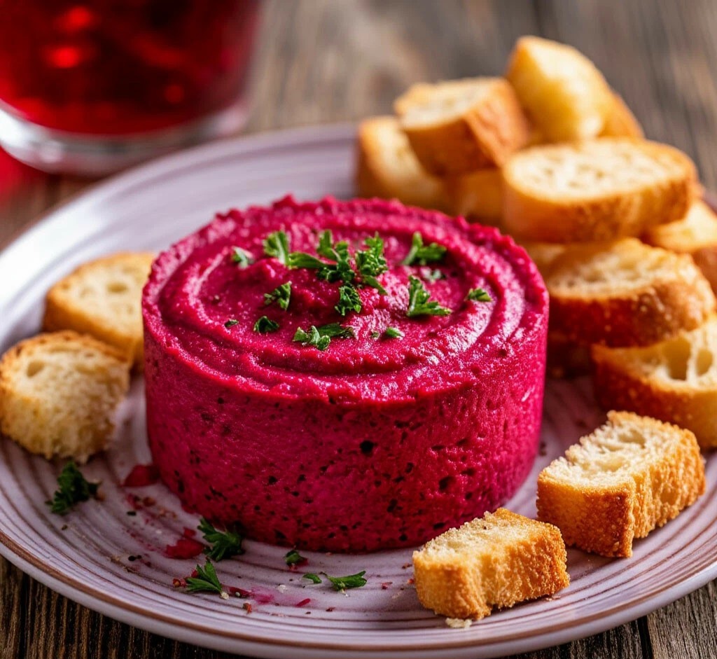 Ингредиенты: - 2 свеклы (среднего размера) - 1 луковица - 50 г сливочного масла - 3 столовые ложки майонеза - Соль и перец по вкусу - Растительное масло для жарки Для гренок: - 4 ломтика хлеба - 1 яйцо - Щепотка соли Приготовление: 1. Нарежьте свеклу и лук кубиками и обжарьте на растительном масле до мягкости. Остудите. 2. В большой миске смешайте свеклу, лук, сливочное масло и майонез. Добавьте соль и перец по вкусу. 3. Для гренок нарежьте хлеб на кубики и взбейте яйцо с солью в миске. Обмакните кубики хлеба в яичную смесь и обжарьте до золотистой корочки на сковороде с маслом. 4. Выложите свекольный паштет на тарелку, сверху выложите гренки. Свекольный паштет готов. Приятного аппетита!