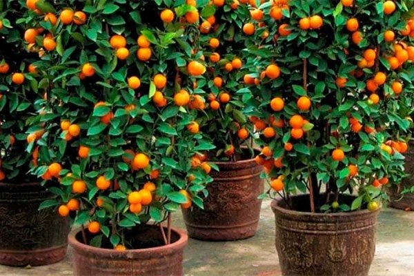 Сроки поспевания фруктов зависят от сорта и условий выращивания. Карликовые комнатные сорта, такие как Izu, Natsu и Honey Jar, обычно начинают плодоносить через 2-3 года после посадки привитой рассады, в то время как растения, выращенные из семян, могут давать первые плоды только через 5-7 лет.