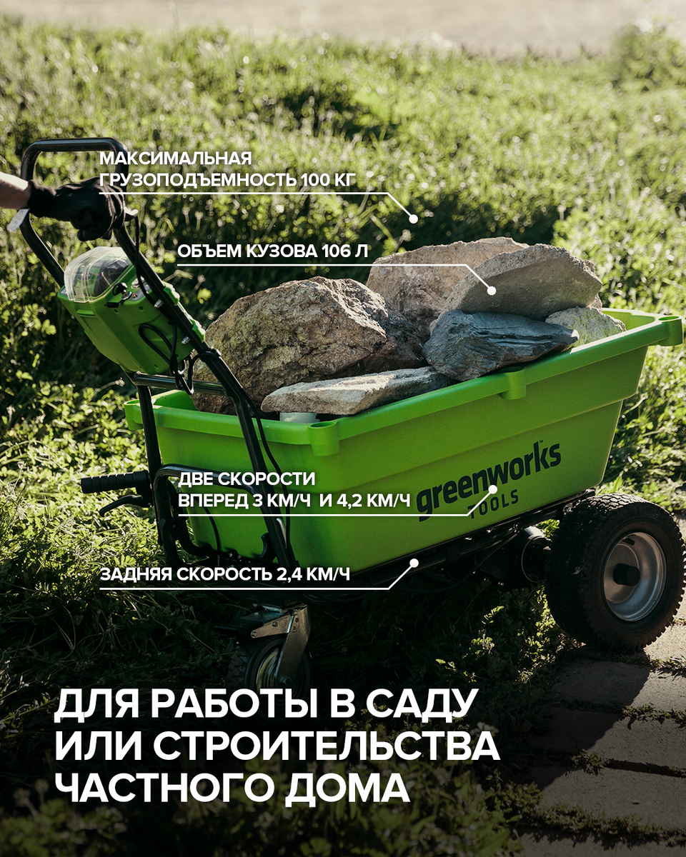 Забываем про тяжёлые тачки и надорванные спины с самоходной аккумуляторной тележкой Greenworks G40GC (7400007)!