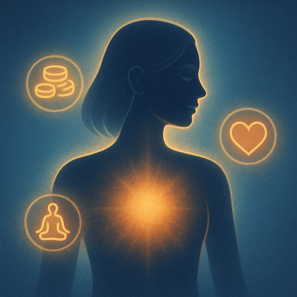Наши мысли и эмоции напрямую влияют на тело. Хроническая злость или обида могут выливаться в болезни, а благодарность и спокойствие — в крепкий иммунитет и восстановление сил. Когда человек занимается внутренней работой, учится отпускать и наполняться гармонией, тело отвечает лёгкостью и здоровьем. Духовность и деньги