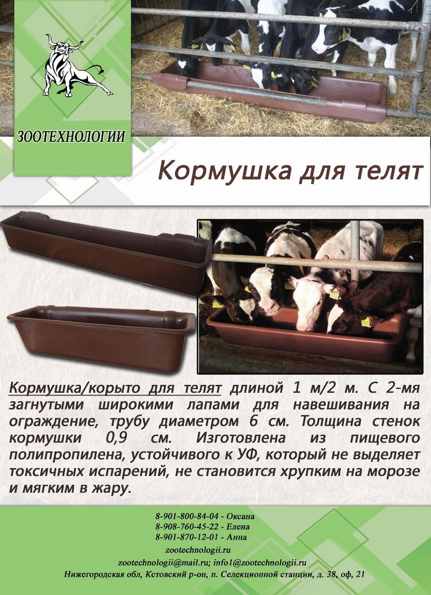 Представляем Вашему вниманию надежное корыто для Ваших телят. Срок службы кормушки от 10 лет.👍 Данный полипропилен, из которого изготовлены кормушки, был разработан в Дании специально для сельскохозяйственных животных. Сырье соответствует нормам FDА аnd ВGVV по продуктам питания, которые гарантируют безопасность корма. Специальный пластик сохраняет долговечность и гибкость при экстремальных температурах. 🥶 Все вопросы Вы можете задать нашим менеджерам: Оксана: 8-901-800-84-04 Елена : 8-908-760-45-22 Анна: 8-901-870-12-01 Юлия: 8-902-787-47-33 Читайте нас в Дзен👍 #Поилки_и_кормушки_для_телят