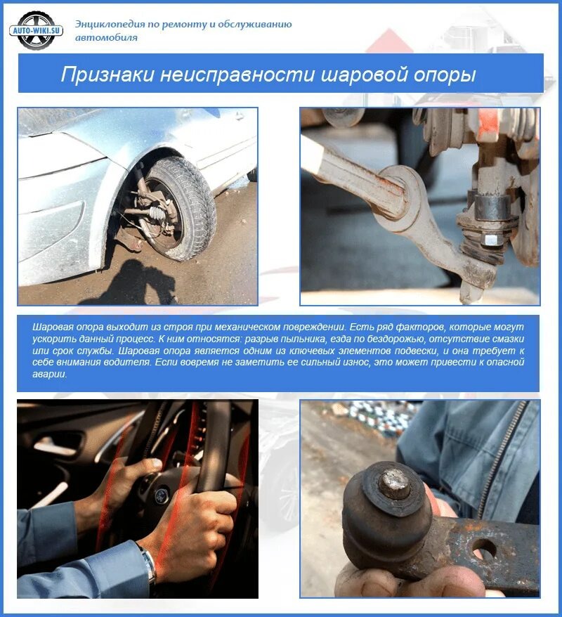 Чтобы понять, что пора менять шаровые опоры, обратите внимание на следующие симптомы: