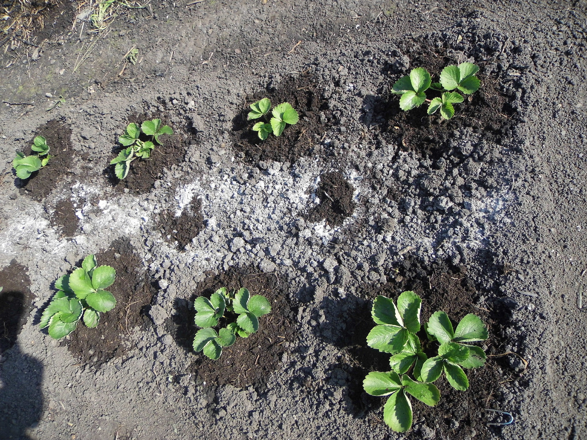 Начиная с 9 августа, три дня я сажала новые саженцы клубники в нашем саду. Посадила немногим больше 80 корней четырёх сортов. Саженцы были свои.