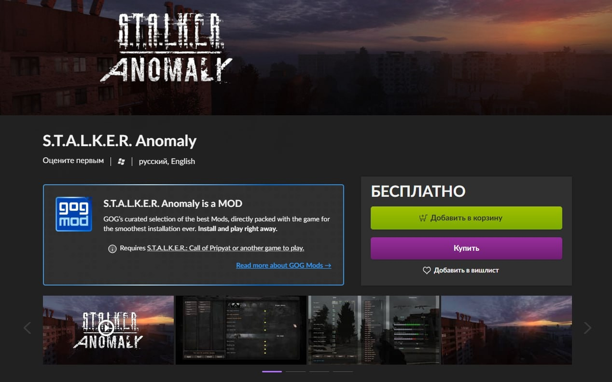 МОД Anomaly в магазине GOG. Это ведь даже не игра а мод на сталкер!