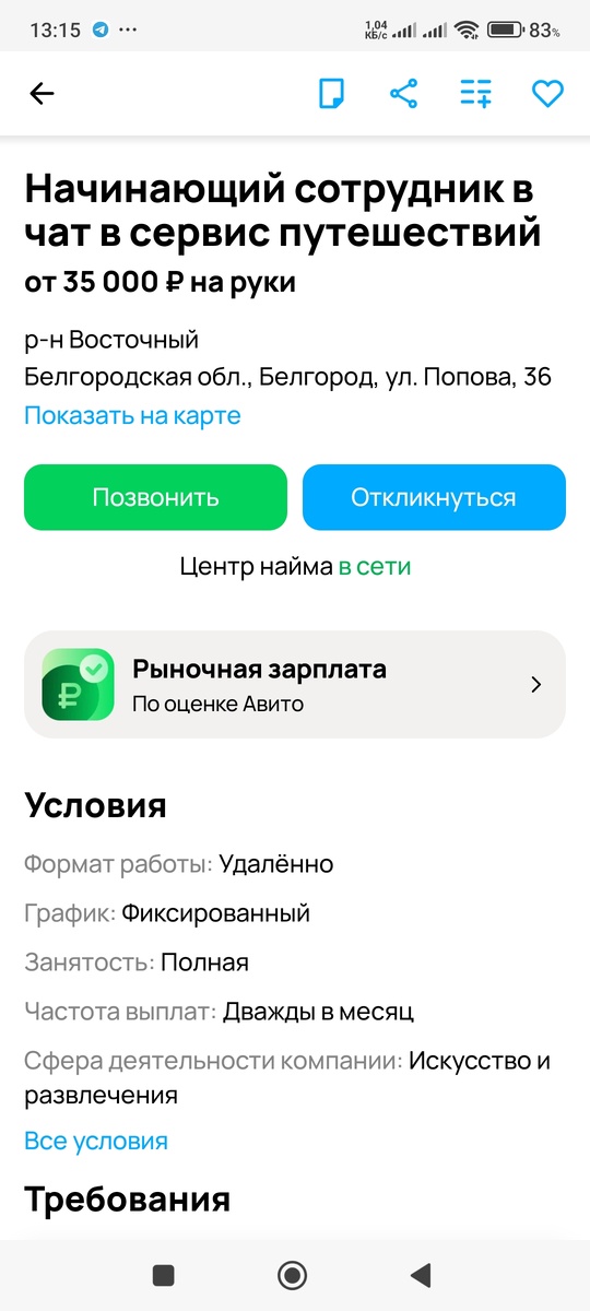 Так вот, вакансии эти можно искать во "всех регионах", если они удаленные полностью и не надо приходить в офис. Что я и сделала. Нашла и откликнулась. Конечно же это оказалась вакансия Яндекса, было написано, что это непрямой работодатель и вас сейчас переведут по ссылке, мол бояться не нужно.