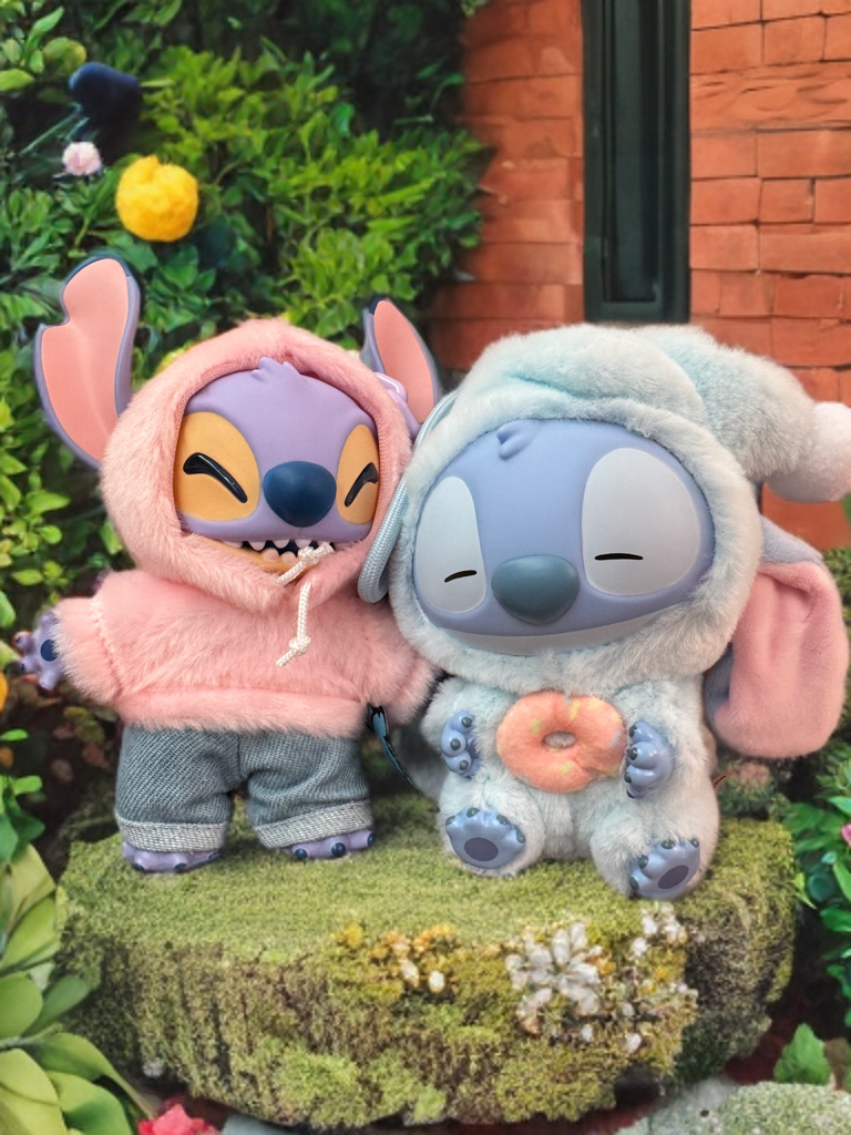 Один, в розовой пушистой толстовке и джинсах, чувствовал себя суперзвездой: — Смотри, какой я модный! Тут и ушки на ветру, и улыбка до ушей! Другой, в голубом костюмчике с ушками и мягким пончиком на пузике, только зевнул: — Мне бы поспать, а не позировать. Я вообще-то пришёл сюда ради пончика! — Какой пончик? — возмутился первый. — Это мой амулет удачи! — Амулет? — хмыкнул сонный Стич. — Ага, «амулет» съедобный. Дай кусочек — проверим, работает ли удача на вкус! Пока они спорили, мимо пролетела пчёлка и села на «амулет». Сонный Стич тут же вскрикнул: — Видишь, это судьба! Пчёлы всегда знают, где сладости! А модный Стич рассмеялся так громко, что все цветы в саду качнулись: — Ладно, ладно. Держи свой «счастливый пончик». Только потом не забудь, что удачу надо делить на двоих! И они вдвоём уселись на мягкую траву: один хрустел пончиком, второй хохотал, а сад вокруг наполнился таким шумом, будто там проходил настоящий фестиваль «Стичей в худи». 🎉🐝🍩