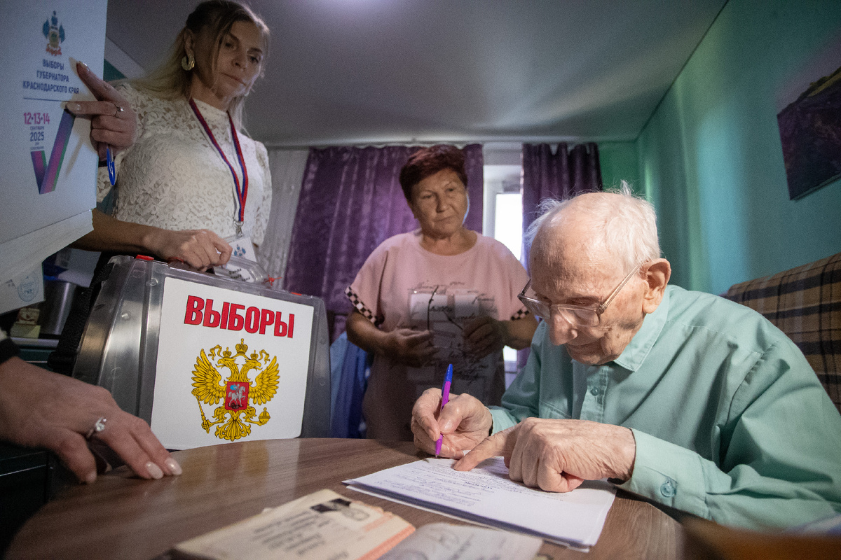 Сегодня сотрудники участковой избирательной комиссии посетили Алексея Петровича на дому, поздравили с Днём Краснодарского края и предоставили ему бюллетени и переносную урну для голосования.