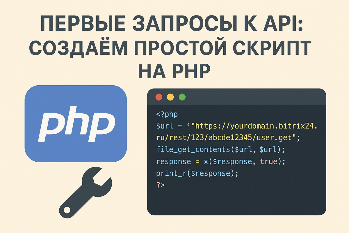 Привет, друг! 👋 Если ты уже знаешь, что такое REST API, но пока не решался сделать свой первый реальный запрос — самое время это исправить. Сегодня напишем простой PHP-скрипт, который подключается к API и вытаскивает данные. 🚀 Разберём всё шаг за шагом, дружеским языком и без лишней теории. 💡 Если работаешь локально, убедись, что твой сервер запущен и PHP работает. Создай файл, например api-test.php, и открой его в редакторе. Предположим, что у нас есть вебхук от Битрикс24 (или другой сервис с REST API).