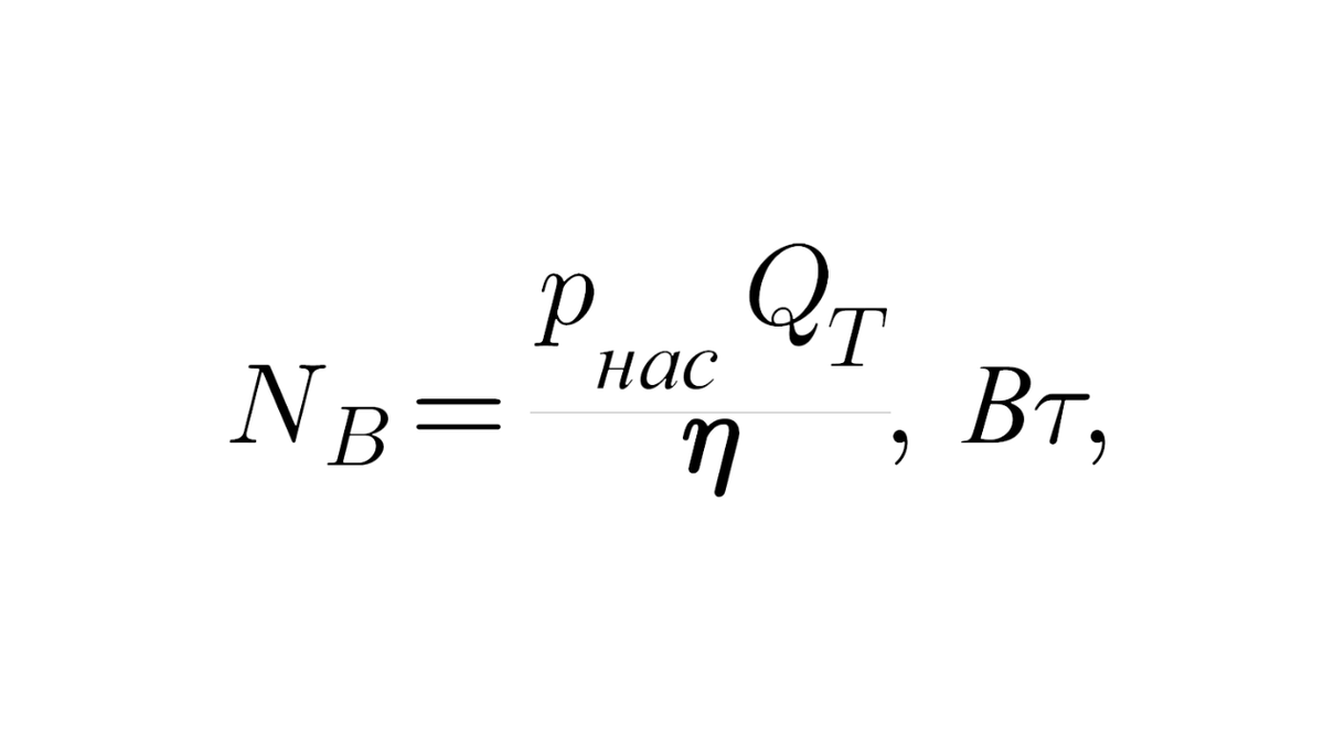 N (кВт) = (P (бар) × Q (л/мин)) ÷ (600 × η)