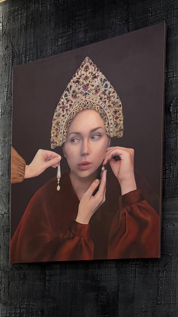 Картина выполнена акрилом в технике «сухая кисть». Работы Натальи отличаются эстетикой русского народного искусства и их можно увидеть на выставках государственных исторических музеев.