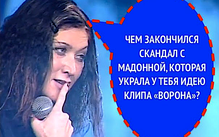 "Скажи, пожалуйста, расскажи, чем закончилась история, получившая широкую огласку, связанная с обвинением Мадонны в плагиате, которая якобы украла у вас, у тебя идею клипа «Ворона»?" "Это, наверное, кто-то так взглянул и написал об этом, поэтому развитие пошло. На самом деле всё очень просто, и, но если это так происходит и какие-то моменты, значительно допустим, похожи, то он почему бы нет, мы-то стоять на месте никогда не будем, поэтому нам не жалко." Разберём первый слой: зритель спрашивает о конкретной истории с широкой оглаской — обвинении Мадонны в плагиате идеи клипа "Ворона" (1996) для "Frozen" (1998). Факты: в 1998 году пресса (включая "Купеческую гавань" и MTV) обсуждала сходство образов (этнические мотивы, вороны, боди-арт), Линда и её команда (пресс-секретарь Антон Климов, режиссёр Армен Петросян) публично комментировали, но иск не подали. Линда отвечает уклончиво: "Это, наверное, кто-то так взглянул и написал об этом". Это минимизация — она отмахивается от "огласки", как о