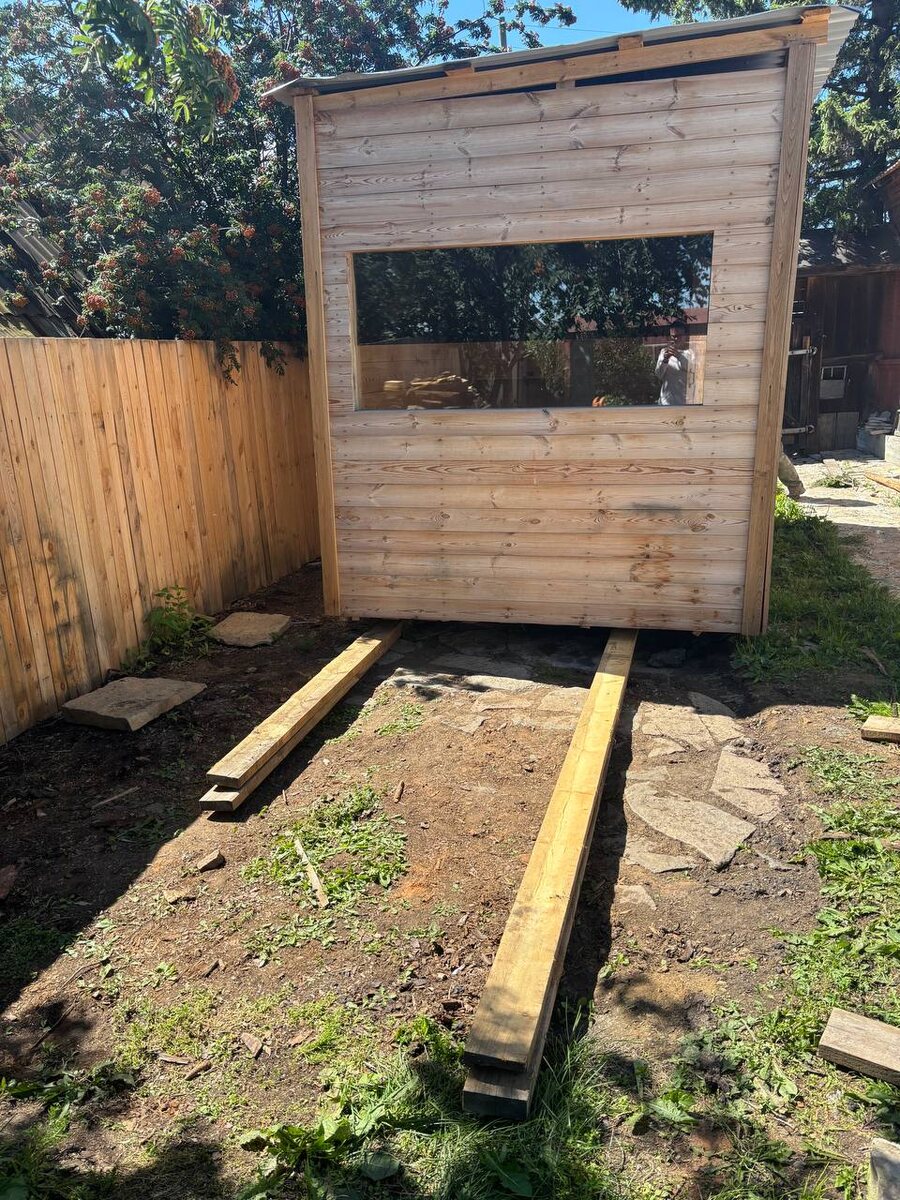 Это бывший вагончик на рынке))) Но внутри и снаружи обшит красивыми досками, а внутри толстый слой утепления - то есть использовать его можно и зимой. Еще у него были красивые панорамные окна, что тоже нам очень понравилось.