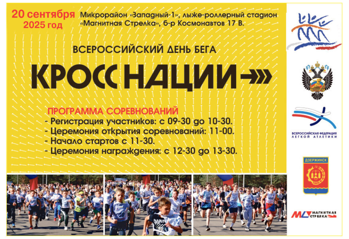 Неделя остается до знаменательного события – Дня бега – «Кросса нации-2025». Этот праздник спорта и здорового образа жизни состоится 20 сентября в Дзержинске на лыже-роллерном стадионе «Магнитная стрелка». В этом году День бега приурочен к 80-летию Победы в Великой Отечественной войне и Году защитника Отечества. Всем желающим принять в нем участие надо знать, что «Кросс нации-2025» будет проходить согласно официальному положению. То есть чтобы подтвердить свое участие в спортивном празднике, необходимо зарегистрироваться на портале «Госуслуги» , вкладка «регион – Нижегородская область, г. Дзержинск, бул. Космонавтов, 26Б» и выбрать любую дистанцию до 23:59 18 сентября 2025 года. Количество слотов ограничено.