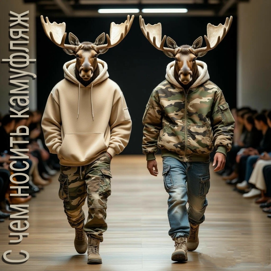 Одежда с камуфляжными маскировочными узорами давно перешла из форменной и профессиональной в повседневную жизнь. В зависимости от того, для какой местности предназначен камуфляжный рисунок, он имеет разные расцветки: например, лесной, состоящий из зелёных, коричневых и серых пятен, песчаный – комбинация бежевого с серым, песочным и коричневым, городской, отражающий цвета асфальта, кирпича, бетона и других элементов городских сооружений и пространств. К камуфляжу часто относят и цвета хаки и оливковый. Если вы собираетесь носить вещи камуфляжных расцветок не только на охоте рыбалке или в туристических поездках, то желательно соблюдать некоторые правила. Камуфляжные принты лучше сочетаются с однотонной одеждой, чтобы соблюсти баланс цветов и избежать перегруженности узорами. Модные образы с камуфляжной одеждой · Повседневный стиль: Камуфляжные брюки или шорты с белой, черной, песочной или хаки футболкой. Верхний слой – джинсовая куртка или бомбер. Обувь: кроссовки или кеды. · Спортивный