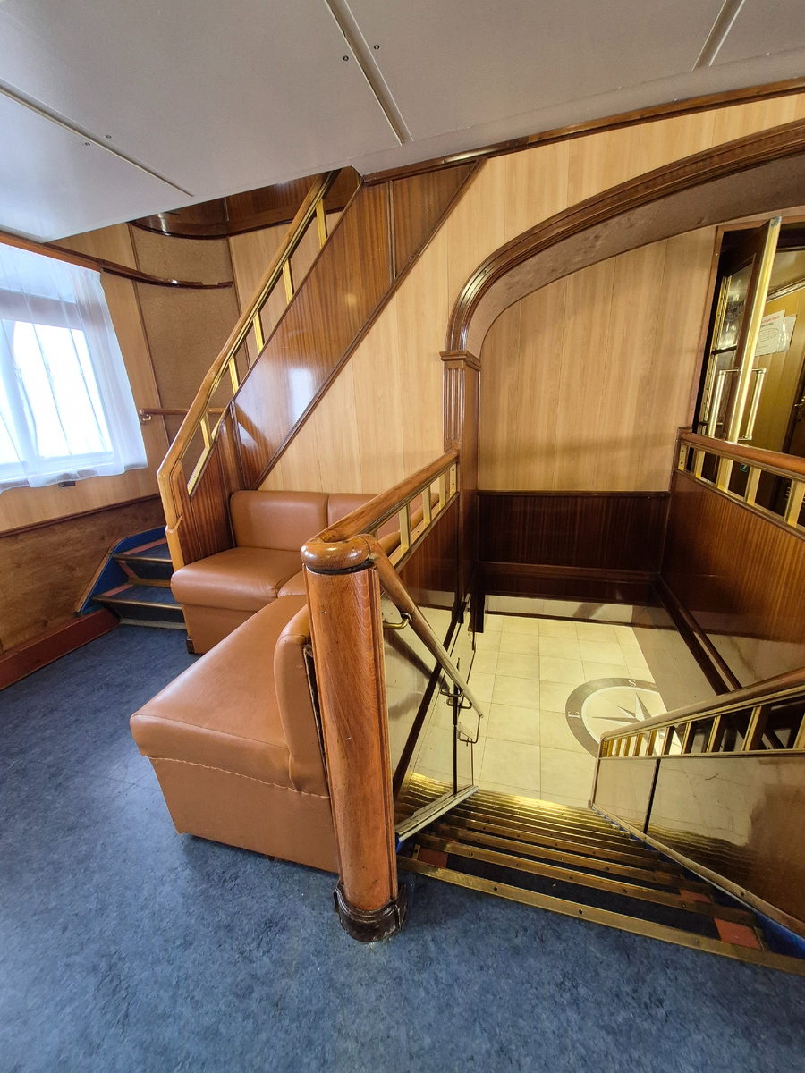 "В отделке теплохода сохранен классический ретро-стиль советского периода". - сказано в описании теплохода. И это правда. Много отделки из массива дерева.