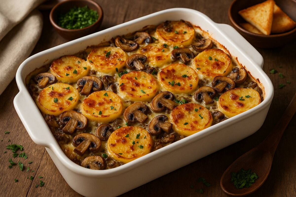 Картофельная запеканка знакома многим, но грибной вариант в сливочной заливке редко встречается в повседневности. Чаще, как «гостевой» рецепт, потому что выглядит красиво и подаётся эффектно. Между тем, готовить её совсем несложно: нужно лишь правильно подготовить продукты и дать духовке сделать своё дело.