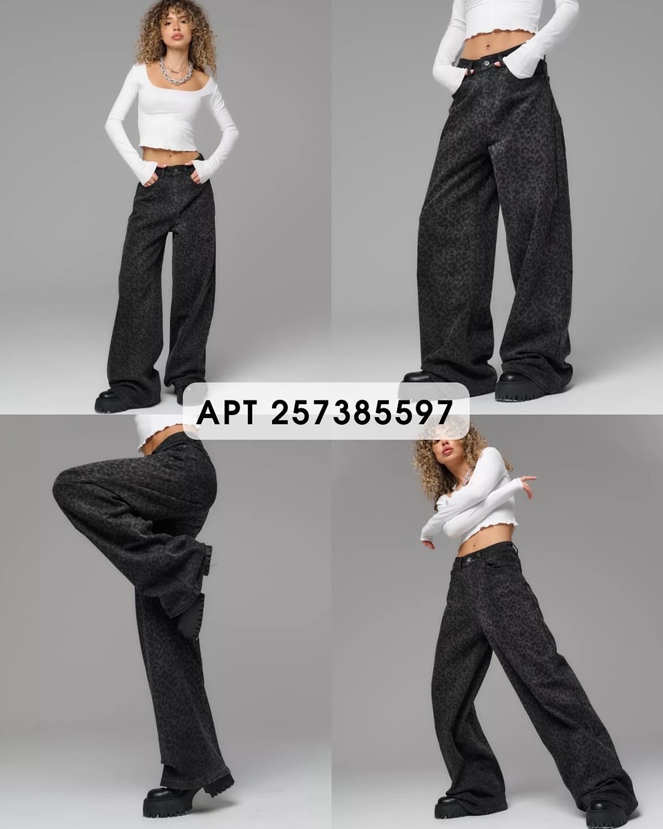 Что это: сверхмодные широкие джинсы с мягким леопардовым рисунком в графитово-чёрной гамме. Принт не кричащий — выглядит как интересная фактура.