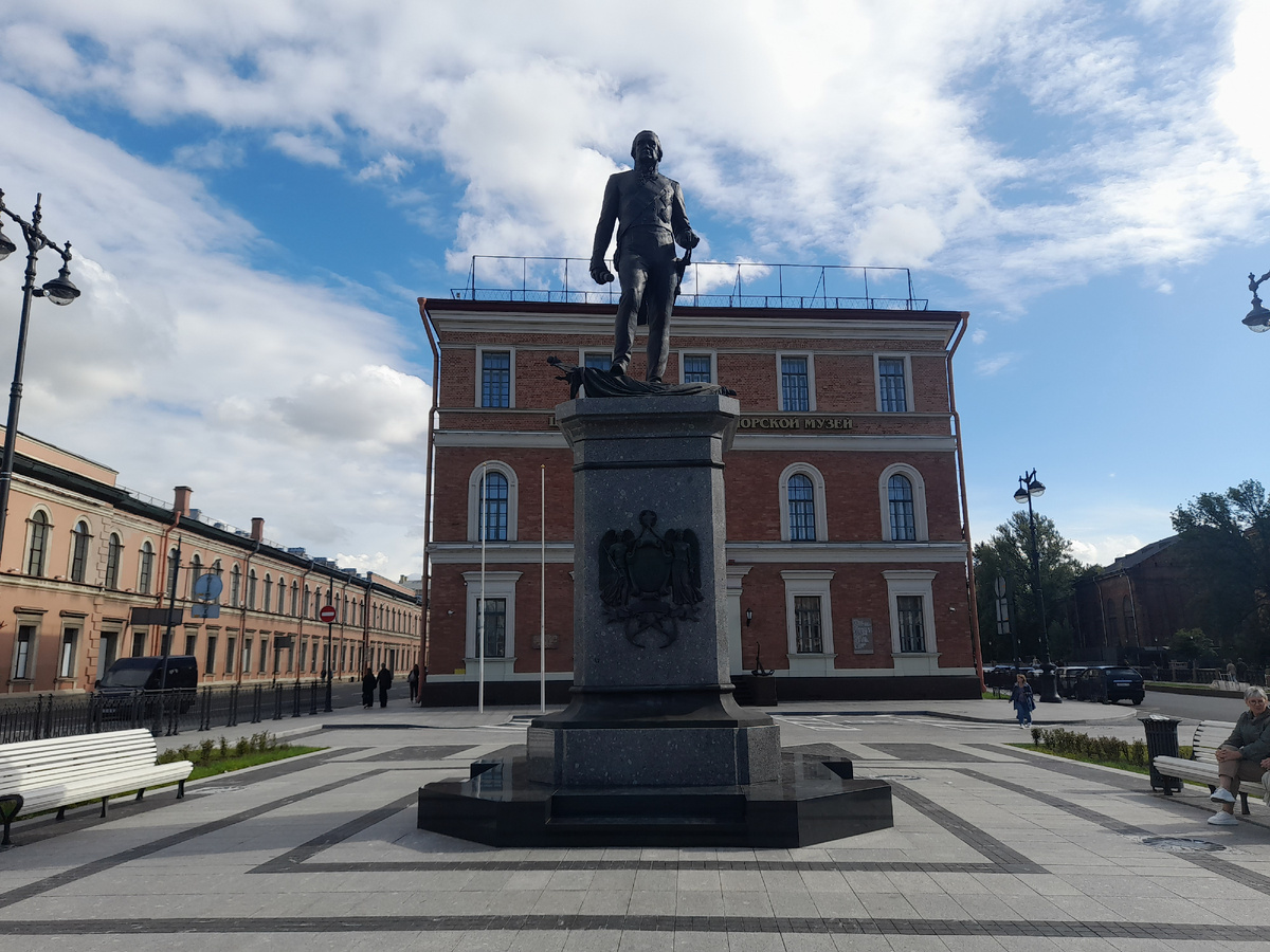 Я собиралась пойти на концерт в библиотеку им. Лермонтова, но его отменили, потому что девушка, которая должна была выступать, не успела вернуться из другой страны. И тут мне подруга предложила сходить на концерт в Военно- Морской музей. Лев Журавский как раз тоже был заявлен на концерте в Лермонтовке. Я с радостью согласилась. Центральный Военно - морской музей в Санкт-Петербурге - один из древнейших музеев в России, основанный в 1709 году по указу Петра I. Кроме того, он входит в число крупнейших музейных учреждений в мире, и является объектом морского историко - культурного наследия. Памятник российскому флотоводцу адмиралу Федору Федоровичу Ушакову в Санкт - Петербурге был установлен 28 июля 2024 года на площади Труда перед Центральным военно - морским музеем имени императора Петра Великого. Его открытие приурочено к Дню Военно-Морского Флота. Вот я подхожу к музею. Немного опаздываю. Но подруга уже заранее заняла место, так что будем сидеть поближе к музыкантам, не в конце зала.