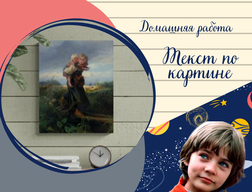 Описание картин и их разбор по принципу «что этим хотел сказать художник» - это особый вид мучений заданий. С этим у детей часто возникают трудности, особенно в начальной школе. Почему? Потому что надо составить логичный и содержательный текст, а малыши пока еще этому не научились. К тому же, трудно угадать мысли художника, который творил свое произведение лет 150 назад. Что именно он хотел сказать, не понимают даже многие взрослые. Однако рассказ с «правильными» выводами все равно надо сочинить. Постараемся малышам в этом помочь. Задания взяты из учебника по русскому языку для третьего класса, часть 1. Авторы – В. П. Канакина, В. Г. Горецкий, 2023 год. Программа – Школа России. Задание 27 Рассматриваем картину: Как выполнить задание ° При взгляде на картину становится тревожно и страшно за детей, которые в непогоду оказались одни в поле. Вероятно, скоро начнется сильный дождь, а детям совсем некуда спрятаться. Они торопятся дойти до безопасного места и спрятаться. Поэтому картина наз