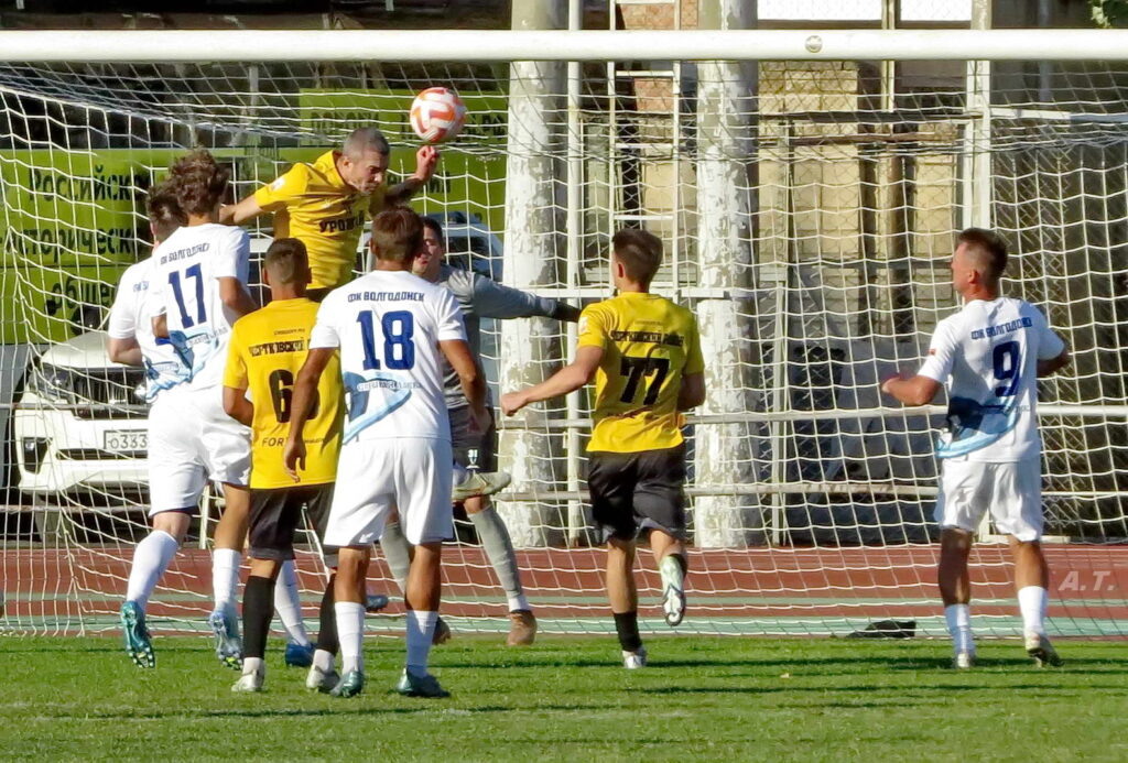 Футбольный клуб «Волгодонск» принимал на своём поле лидера — команду «Урожай» из посёлка Чертково, Чертковского района. Болельщикам со стажем понятно было ещё до начала матча, что волгодонская команда не сумеет выиграть, тем более, что и домашний матч «Урожай» выиграл со счётом 3:0 в первом круге. Пожалуй, это суждение было недалёко от истины, хотя в сегодняшнем матче начало было обнадёживающим. Ф/К «Волгодонск» захватил инициативу и имел немалое преимущество, вот только голы летели в наши ворота. Первый гол соперник забил дальним ударом со штрафного, второй гол влетел после подачи углового. Затем под конец первого тайма волгодонцы получили право на пенальти и вратарь гостей отбивает мяч. Хороший вратарь — это половина команды, как раз это о вратаре соперников, который еще несколько раз выручил свою команду. Во втором тайме игра выровнялась, а на десятой минуте ошибка волгодонцев в защите — и гости забивают третий мяч . Единственное, что удалось нашей команде, это размочить счёт. Антон