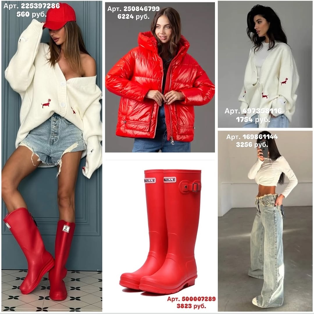 Две палитры — два настроения. Красный делает образ дерзким и фотогеничным, розовый — мягким и «дорогим». Я разобрала вещи с фото строго по порядку по артикулам и собрала капсулу, где всё стыкуется между собой. У каждой позиции — что видно на фото, как сидит, с чем носить и Совет стилиста.