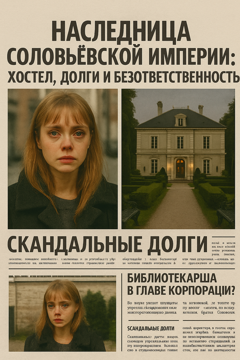 Под заголовком — её фотография. Та самая, нелепая, сделанная папарацци на выходе из хостела несколько недель назад. Она была растерянная, в старом пальто, с красными от слёз глазами. Рядом — фото роскошного особняка Соловьёвых для жёсткого контраста.