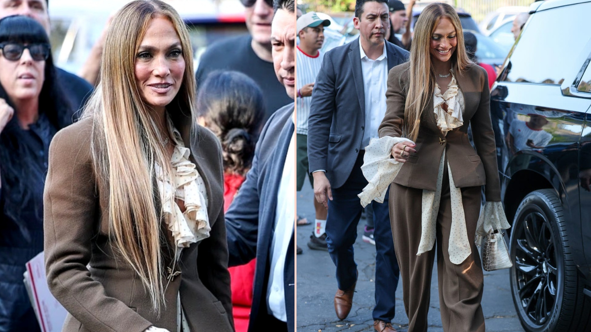 Осень уже не за горами, и мы думаем о таких традиционных вещах, как куртки, свитера, шарфы и сапоги. Но Дженнифер Лопес предлагает вдохновение для того, чтобы разнообразить свой сезонный гардероб в стиле бохо. На промо-мероприятии своей новой музыкальной драмы "Поцелуй женщины-паука", премьера которой состоялась на кинофестивале "Сандэнс" в январе этого года, Лопес появилась в костюме коричневого цвета от Harithand. Образ певицы привнес немного романтики. Выйдя поприветствовать поклонников, Лопес надела блейзер, застегивающийся на золотую пуговицу с логотипом. В пару к нему она надела коричневые зауженные брюки. Однако настоящим украшением стала блузка Джей Ло, украшенная рюшами, которые рассыпались по лацканам блейзера и украшали его глубокий вырез. Такие детали присутствовали и на рукавах-колокольчиках. К блузке прилагался соответствующий шарф, который основательница JLo Beauty перекинула вперед. Она дополнила образ нюдовыми туфлями на платформе и одной из своих любимых моделей