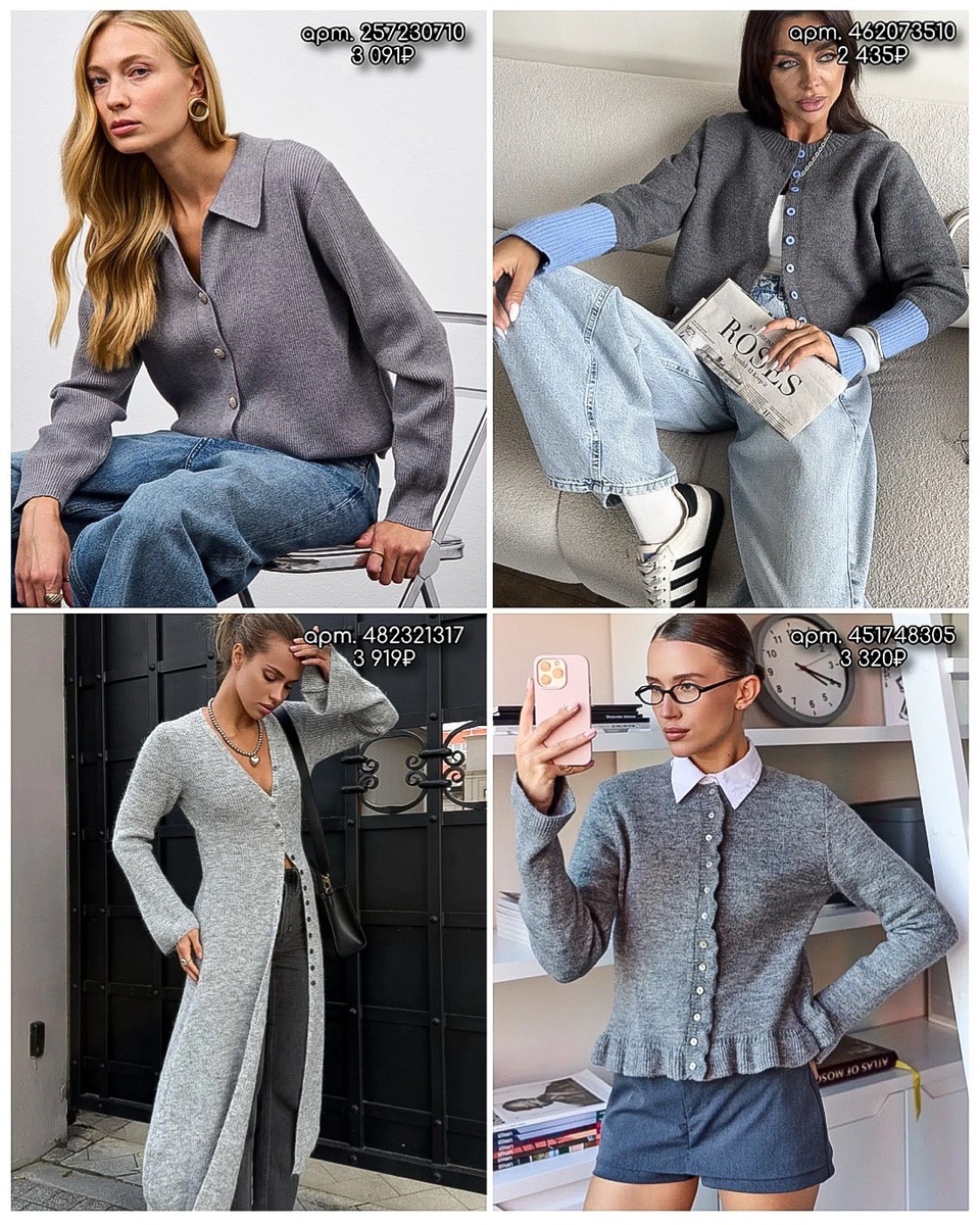Кардиган давно перестал быть «просто тёплой кофтой». С правильной моделью вы собираете образ уровня подиума за считанные минуты. Выбирайте: серый умный, шоколадный драматичный или лимонный освежающий — и смело добавляйте в капсулу.