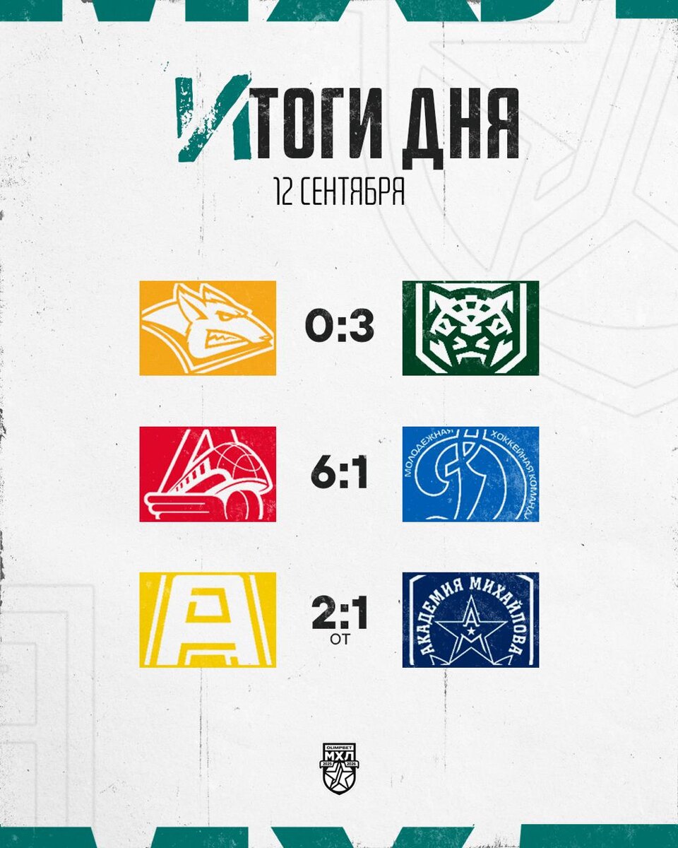 Итоги дня в МХЛ «Стальные Лисы» уступили дома «Ирбису» - 0:3 «Алмаз» в овертайме смог выиграть у «Академии Михайлова» - 2:1ОТ «Локо» не дал шансов московским «Динамовцам» - 6:1 @nhockey