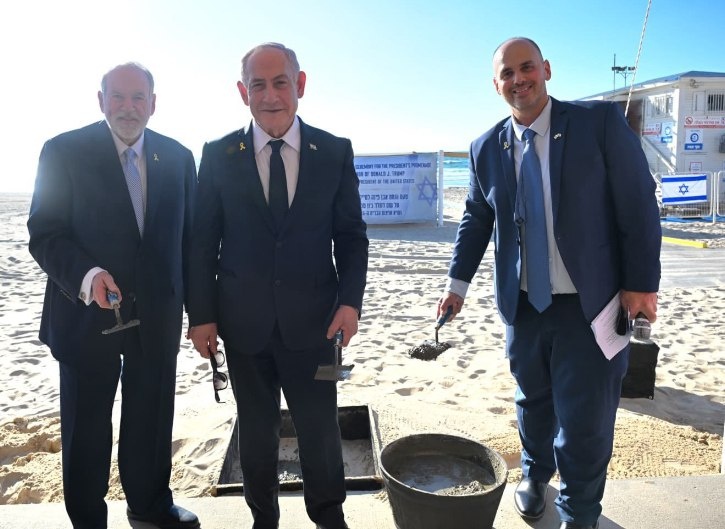 US Ambassador Huckabee joins Netanyahu in cornerstone-laying ceremony for ‘US President Donald Trump Promenade