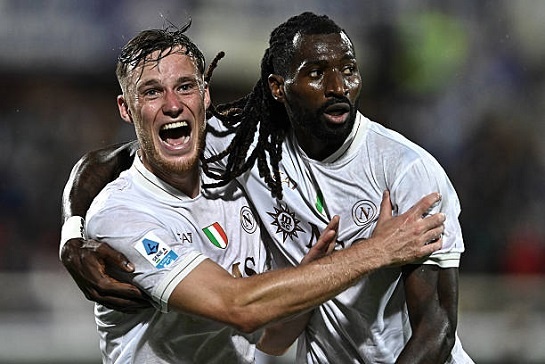 Чемпион Италии "Наполи" отправился в гости к "Фиорентине" и уже в дебюте встречи открыл счёт. Сперва Де Хеа спас хозяев после удара Ди Лоренцо с острого угла, а Хейлунн не сумел сыграть на добивании. Атаку южан прервал Комуццо, сфоливший против Замбо-Ангисса. Арбитр без раздумий указал на "точку", и де Брейне, реализовав пенальти, вывел неаполитанцев вперёд. А вскоре Хейлунн исправился. Получив пас от Спинаццолы, датский нападающий вышел один на один с голкипером и пробил мимо Де Хеа в дальний угол ворот. Затем Хейлунн выступил в роли ассистента, но "лилий" спас Де Хеа, отбивший удар де Брейне. Кен мог вернуть флорентийцев в игру после прострела Додо, но его опередил Ди Лоренцо. В начале второго тайма счёт стал разгромным – прострел Замбо-Ангисса во вратарскую замкнул Беукема. У "Фиорентины" же в атаке мало что получалось: Милинкович-Савич по-прежнему оставался без работы – ни одного удара в створ. Лишь в концовке Мандрагора нанёс удар под перекладину – голкипер отбил мяч. Но затем он оказался бессилен перед ударом Раньери в ближний угол. Впрочем, сербский страж ворот чуть позже исправился, не позволив переиграть себя Пикколи, вышедшего на встречу с голкипером. Хозяева стремились вернуться в игру, но счёт больше не изменился.