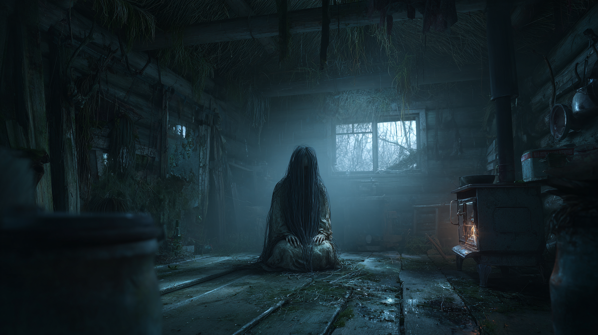 Хата выросла из тумана внезапно. Она стояла на небольшом, сухом пятачке земли, вся кривая, вросшая в землю, покрытая зелёным мхом, будто не построенная, а выросшая здесь, как гриб-погань. Брёвна были тёмные, влажные, скользкие на вид. Но в единственном маленьком окошке горел тёплый, уютный свет.