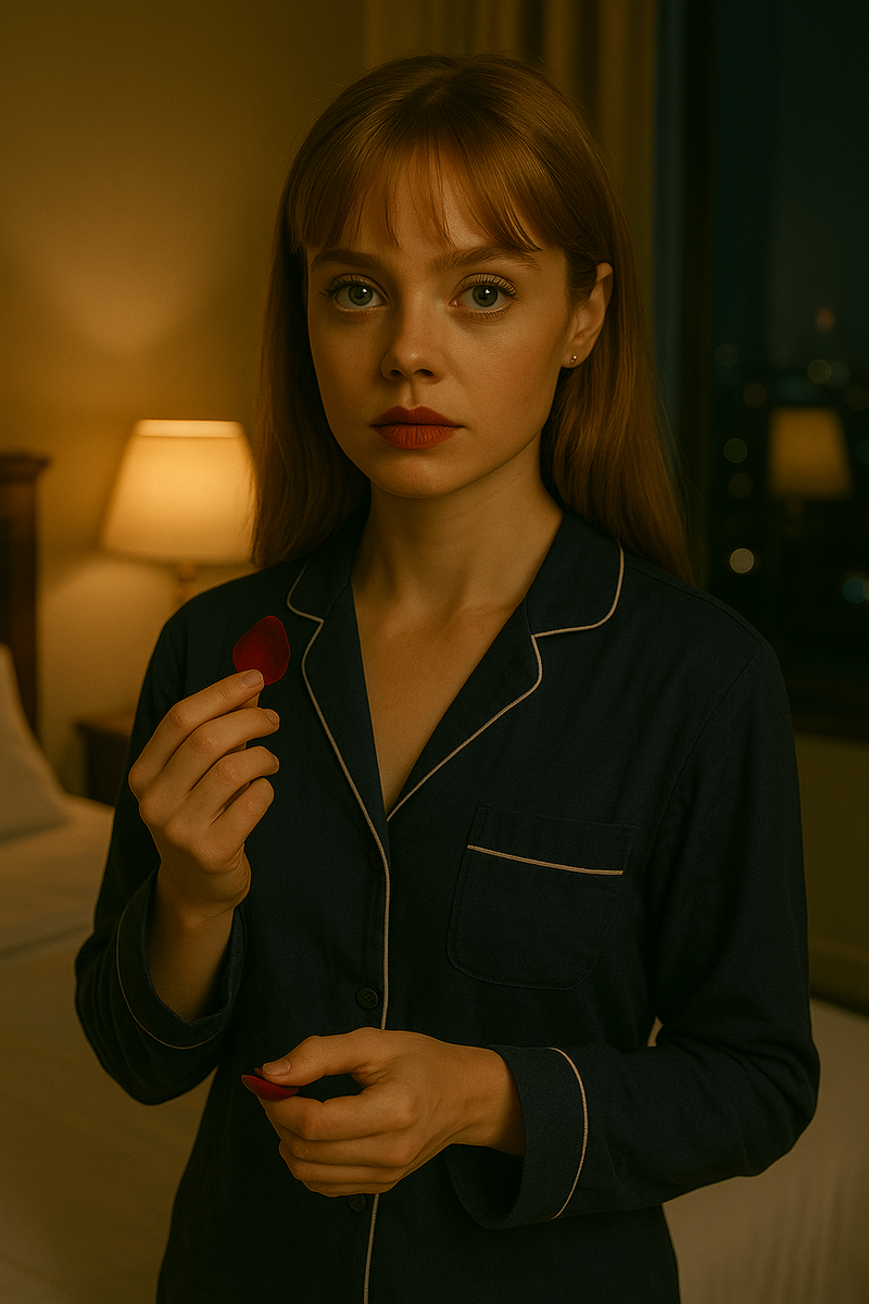 На белоснежном покрывале лежал один-единственный лепесток розы. Тёмно-красный, бархатный, ещё влажный, как будто его только что сорвали.