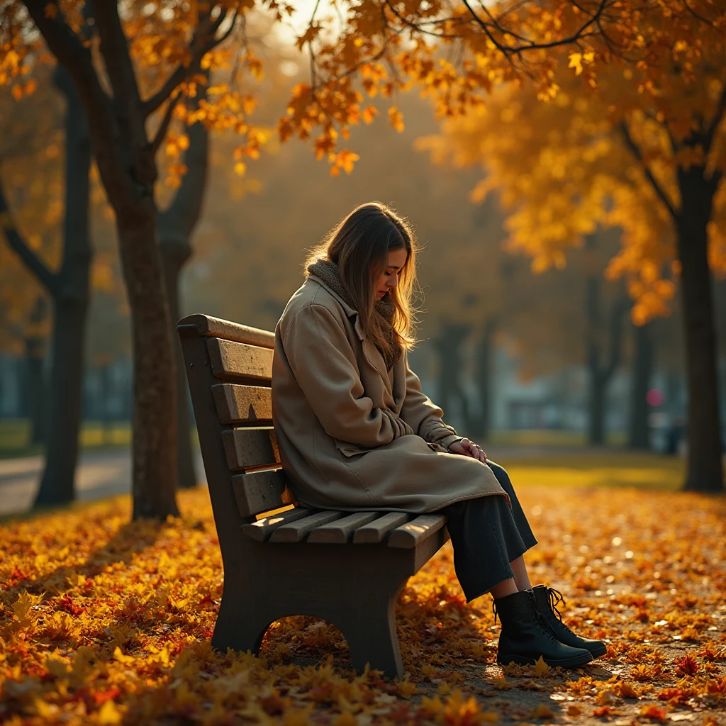Она сидит на скамейке и смотрит на пустую аллею. Листья под ногами шуршат от ветра — единственный звук в этой тишине.