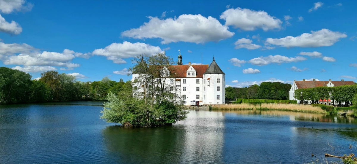 Глюксбург (нем. Schloss Glücksburg) — семейное гнездо династии Глюксбургов. Гуси у замкового рва. В замковом музее: Вещи Марии Фёдоровны, жены Александра III Музей викингов Хайтабу в Бусдорфе у Шлезвига посвящён