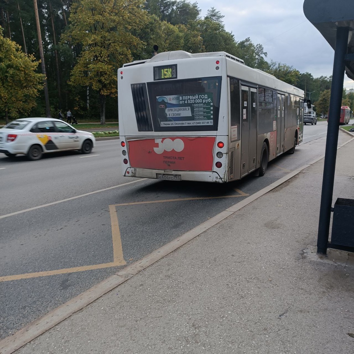 Маршрут автобуса 15, государственный номер Е604УС 159.