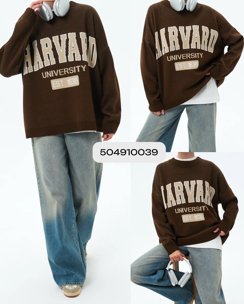 1) Арт. 504910039 — шоколадный лого-свитер «HARVARD»