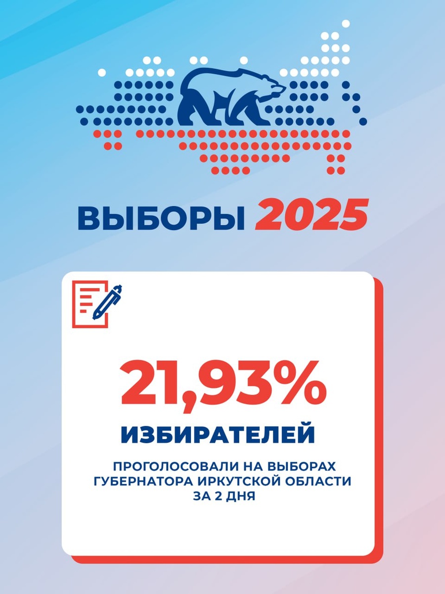 ⚡️Во второй день голосования 13 сентября на выборах губернатора Иркутской области проголосовали 400 929 человек, это 21,93% от общего числа
