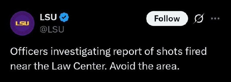 'Shots fired' at Louisiana State campus as officers rush to scene 'Avoid the area'