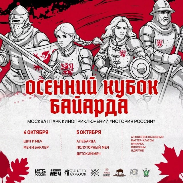 Турнир - Осенний кубок Байарда Дата проведения: 4-5 Октября 2025 г. Место проведения: Зона отдыха "Тропаево" В программе дуэльные номинации: - Щит и Меч - Меч и Баклер - Полуторный меч - Детский меч - Мастер классы - Ярмарка - Фотозоны Форма регистрации участников: https://docs.google.com/forms/d/e/1FAIpQLScP3ht6LL6UzwLpn3x1sw_AXgZ5vQeAAkxxyGnFEuOyFQ2-lg/viewform Мероприятие платное. Более подробную информацию можно найти на странице мероприятия: https://vk.com/im/convo/33947874?entrypoint=list_all&w=wall-219424374_742 Полный календарь мероприятий можно посмотреть тут: donjon.ru/events/ Если вы организатор и хотите, чтоб мы рассказали о вашем мероприятии, пишите нам на shop@donjon.ru #Donjon #Турнир