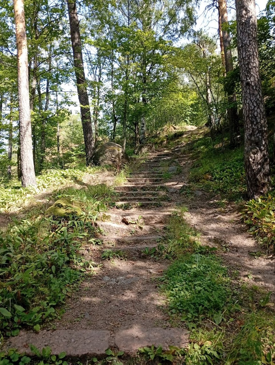 В последние дни лета мы побавли в Выборге и зодно посмотрели место о котором мало кто знает. Не буду тянуть, сразу скажу это место - парк Папула. Добраться туда от железнодорожного вокзала Выборга можно или пешком за 20 минут или на автобусе. Подъем на гору начинается с лестницы. Дальше она превращается в мощеную дорожку. А затем и вовсе идет по скале! При подъеме с левой стороны находится находится вышка связи или нечто схожее. Она немного портит общий вид. Похоже к ней относятся и некоторые заброшеные здания. Вот мы и на вершине. Слева находится старинная водонапорная башня. При большом желании и хорошей физической форме на нее можно забраться. Вид с горы очень хороший. Видно и Часовую башню, и башню Ратуши, и Выборский замок. При спуске был найден камень, а это значит что наступило время фото! В тот день мы еще сделали много фото вот некоторые из них: Район Папула: Вокзал выброга: Дом бюргера: Часовая башня: КОНЕЦ!