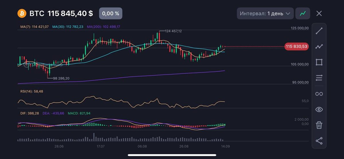 🔔 Bitcoin удерживает $115 000: что дальше? Кратко: • BTC снова выше $115 000, захватив внимание аналитиков. • Сопротивление сейчас в районе $116 000–$121 000. • Ключевая поддержка: около $114 500, дальше — $113 000–$112 000. ⸻ Прогноз / Что смотреть: • 📈 Бычий сценарий: закрепление выше $115 000 → движение к $120 000–$121 000 и выше, при удовлетворительном объёме и инстинвесторах. • ⚠️ Медвежий сценарий: пробой вниз из зоны сопротивления, особенно если $115 000 не удержится, может потянуть цену к $110 000 и ниже. • Важные триггеры: публикация данных по инфляции (CPI, PPI), решения ФРС, поток ETF-инвестиций, настроения держателей (он-чейн). #Bitcoin #BTC #Crypto #Криптовалюты #BTCновости #BTCанализ #Криптоновости