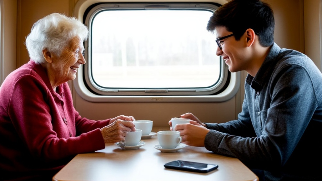 Говорила она так жалобно. Слёзно выманивала себе нижнее место, чётко аргументируя необходимость в нижней полке. Говорила тихо, по-доброму. Юноша, видать, воспитанный в лучших традициях уважения к старшим, не стал возражать, кивнул головой в знак согласия. Много не говорила лишних слов. Поменял постели и залез на верхнюю полку.