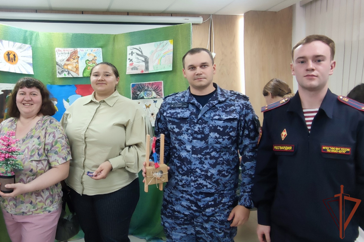 Военнослужащие и сотрудники Управления Росгвардии по ХМАО – Югре приняли участие в благотворительной ярмарке, организованной в Ханты-Мансийском центре содействия семейному воспитанию. Более 50 поделок из дерева, фетра, шишек и других материалов подготовили подшефные Росгвардии воспитанники в возрасте от 7 до 17 лет. В адрес начальника Управления Росгвардии по ХМАО – Югре полковника полиции Евгения Симакова поступила благодарность от директора Ханты-Мансийского центра содействия семейному воспитанию Ирины Пасицкой за активное участие в благотворительном мероприятии. В ходе мероприятия были организованы мастер-классы: дети взрослые могли совместно мастерить, например, шить чебурашек из фетра, которые отправятся вместе с посылками на фронт и станут добрыми талисманами для югорчан. Особую атмосферу создавала общая работа по плетению маскировочных сетей. На вырученные средства будут закуплены медикаменты и продукты питания для ребят, проходящих службу в зоне выполнения специальной военной о