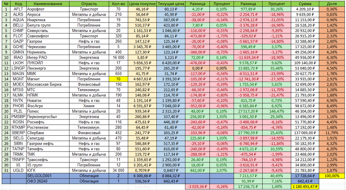 Еженедельный (в этот раз не субботний) отчет о состоянии моего портфеля. Ставка 17% 📉