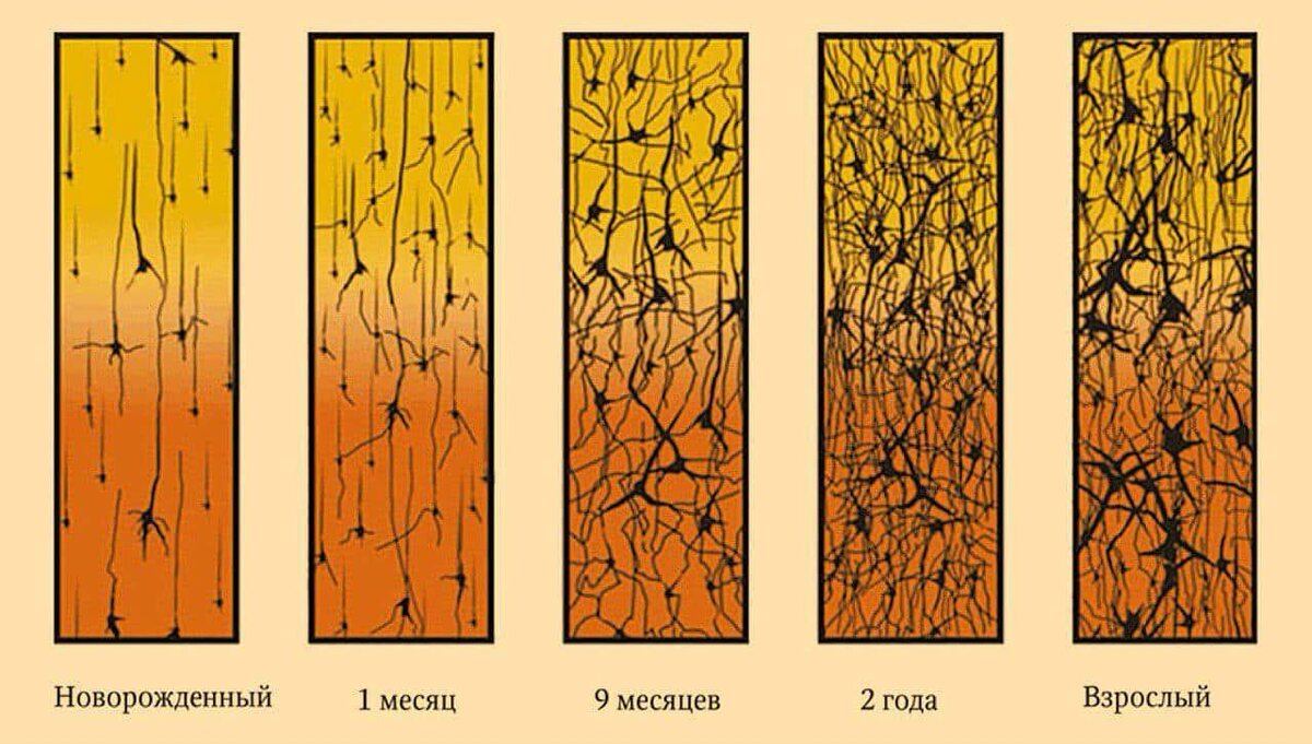 При рождении зоны мозга напоминают черновые наброски без деталей и недифференцированные Затем наступает сенситивный период детства – эпоха нейропластичности, черновой набросок становится детализированным В сенситивный период кора головного мозга настолько пластична, что может легко меняться под действием нового стимула Такая чувствительность и позволяет детям без труда учиться новым навыкам и языкам, всего лишь слушая и наблюдая окружающих После окончания сенситивного периода для обучения уже придется прикладывать усилия, для концентрации внимания и запоминания В сенситивный период «механизм обучения» постоянно включен, т.к. мозг не знает, что именно ему будет важно, он усваивает всё подряд Произвольное внимание способен обращать только мозг, для которого характерна уже определенная организованность Решающую роль в сенситивный период играет нейротрофический фактор мозга (BDNF), он укрепляет связи между нейронами, которые активно работают вместе в этот период Так же BDNF актвиирует