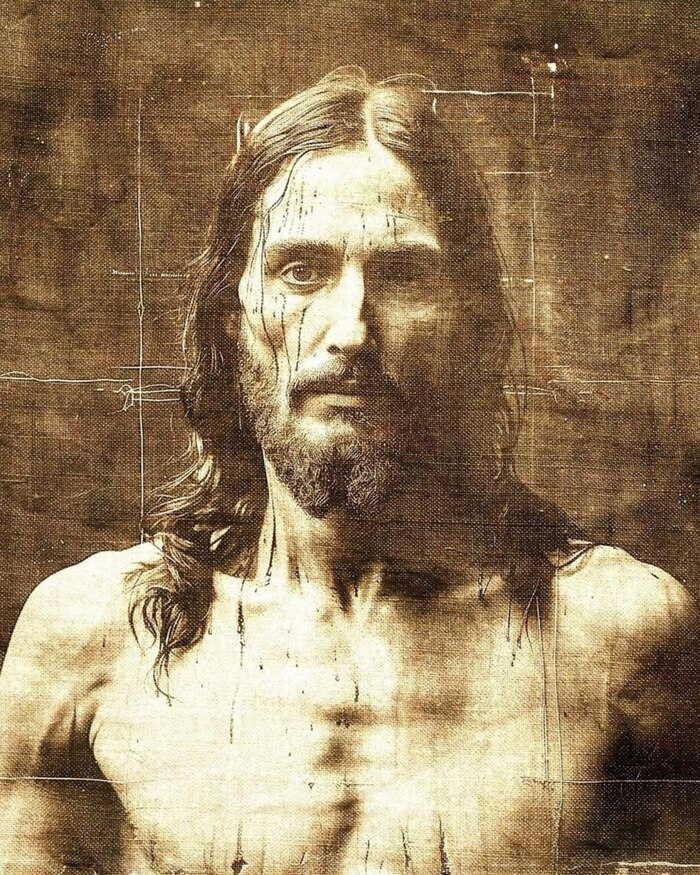 Полотно — это безмолвный свидетель тяжкого финала, и его свидетельства совпадают с евангельскими описаниями Страстей Христовых с пугающей точностью. На теле запечатлелись многочисленные следы, оставленные римским бичом-flagrum — орудием с тяжелыми наконечниками. Судя по расположению отметин, этим занимались двое, стоявшие с разных сторон. На голове — множество колотых ран, оставленных не изящным терновым венцом, как на картинах, а скорее шипастым «шлемом», грубо надетым на голову. Лицо несет на себе отпечаток сильных ударов: поврежден носовой хрящ, заметен отек на правой щеке. На плечах — ссадины от тяжелой перекладины креста (patibulum). На коленях и кончике носа обнаружены частицы почвы, идентифицированной как травертиновый арагонит, характерный для окрестностей Иерусалима.