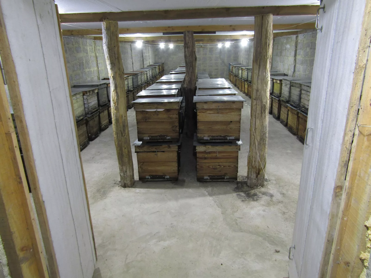 - Надземный зимовник (утепленный сарай): Сильнее всего реагирует на внешние температуры. Потребуется самое внимательное отношение к регулировке заслонок. Часто в такие зимовники пчел заносят позже и выносят раньше.