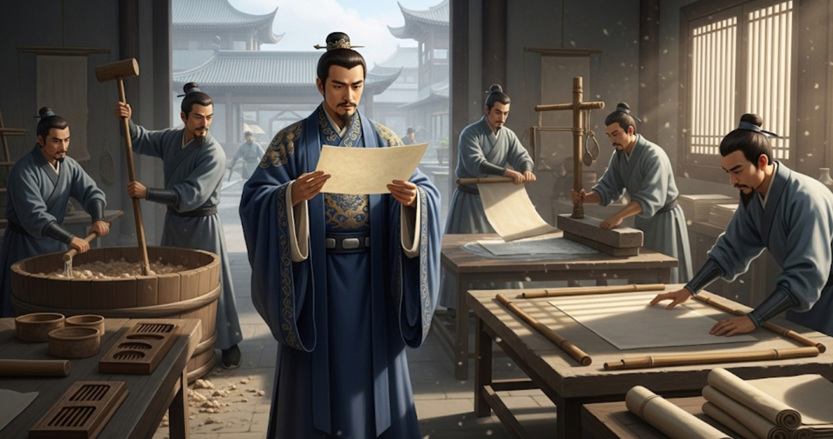 Считается, что бумагу изобрёл китайский чиновник Цай Лунь в 105 году н. э. Он служил при дворе императора династии Хань и искал способ удешевить производство материалов для письма.