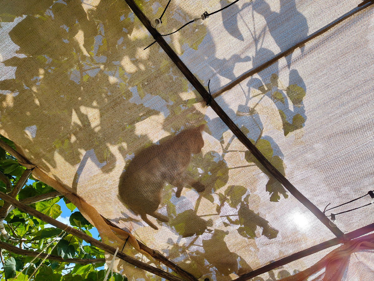 Утра доброго! Неба чистого! У Манго утро точно задалось:)) Спал на беседке. Конечно, я тоже люблю в гамаке вздремнуть минут 15:) Сразу настроение поднимается выше некуда, сил накапливается, и заряд энергией еще на полдня обеспечен:) Видимо, я как кошки:) Тоже работаю от солнечной батареи:) Немного утренней милоты, которая зашкаливает:)) Вот так ходишь мимо, вся в делах, да с грязными руками. А потом раз! и цветочек:)) Так еще и любимая МоккаРоза решила цвести:) Вот мой любимый цвет у роз:) Немного кофе, немного молока, немного карамели:) Теплые, ароматные и спокойные, как мой день:) А это пыльное создание уже хочет домой. Ночи прохладные, а значит, тропическому кумквату нужно создавать нежные условия. А то сбросит плоды потом, и окажется, что он зря старался, а я зря радовалась... Не дело это, нужно спрятать:) В парке перед домом болеющая раком яблоня решила дать плоды. Второй раз за всё время. Мы в этом году отращиваем у неё здоровый побег ниже болячки, а как только она уснет, спилим